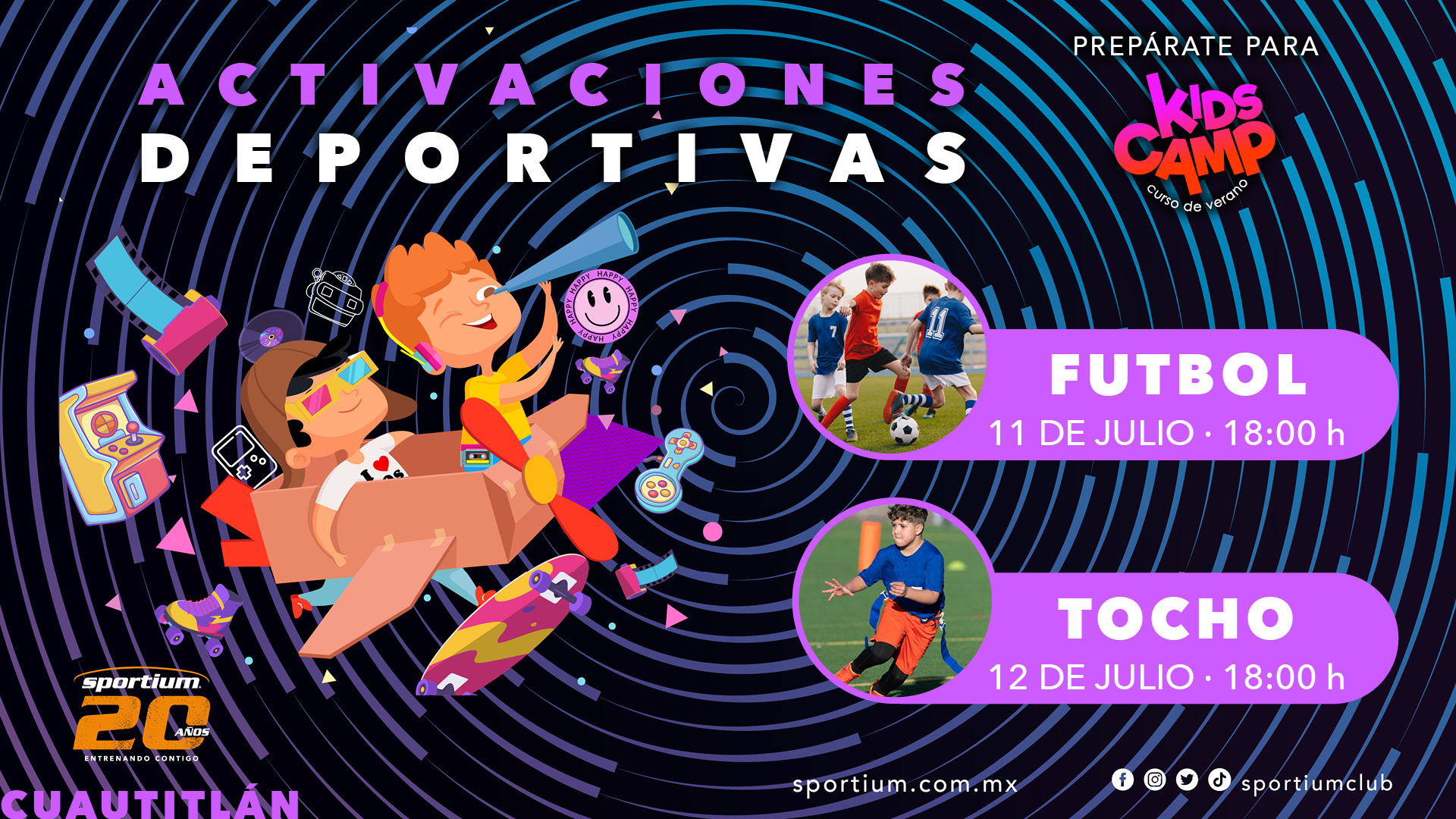 Del 13 al 20 de julio, tendremos preparadas las Activaciones Deportivas, previas a nuestro curso de verano. Contaremos con diferentes actividades para que todos los peques puedan participar y pasar momentos de aprendizaje, ejercicio, ¡y mucha diversión!
